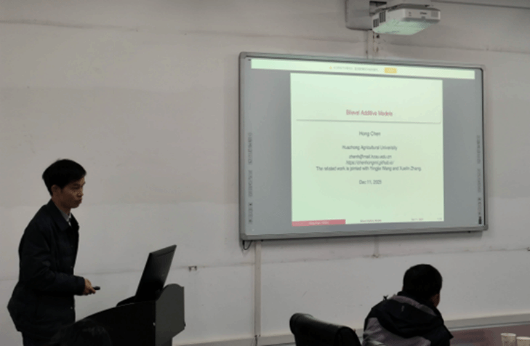 坛报告环节内容扎实、亮点纷呈。首先,华中农业大学陈洪教授以《Bilevel Additive Models》为题作报告。针对传统可加模型过度依赖先验知识、损失函数设计缺乏自适应性、噪声特征干扰流形学习效果的核心痛点,陈洪教授创新性提出双层可加模型构建方案。该模型通过双层优化框架实现数据驱动的知识挖掘,相关理论分析与多组实验数据均验证其在函数逼近与变量选择性能上显著优于传统模型,为机器学习领域自适应建模提供了新范式。
