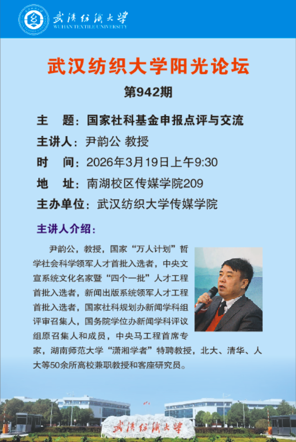 3月19日上午,学院再邀国家社科规划办新闻学科组评审原召集人尹韵公教授莅临指导。作为新闻传播学领域资深专家,尹教授结合多年评审经验,为我院9位申报教师带来了一场高水平的申报辅导。